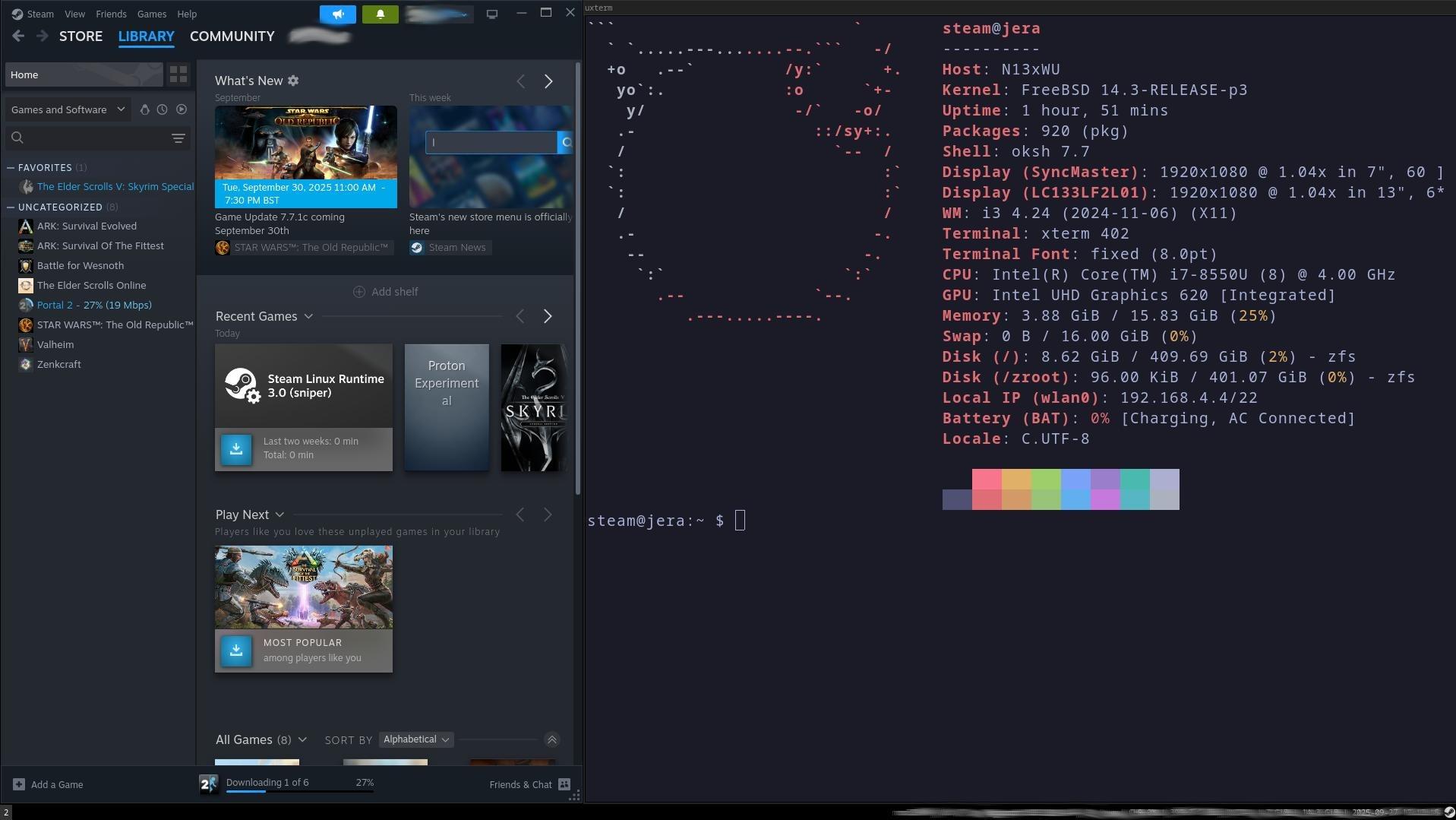 1. Downloading and installing games was painful. Steam would crash with some monitor file descriptor assert error. I had to start Steam multiple times to install a game